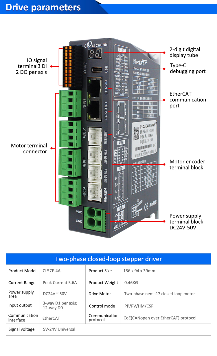 EtherCAT 2-faset Nema24 4-akset DC lukket sløjfe stepmotor driversætNye produkter EtherCAT 2Phase Nema17 4-akset DC lukket sløjfe stepmotordriversæt fremstillet i Kina med CE/ROHS fra LICHUAN®. Vores fabrik er en berømt EtherCAT 2Phase Nema17 4-akset DC Closed Loop Stepper Motor Drivers Kit producenter og leverandører i Kina. Vores produkt er af høj kvalitet/holdbar/stabil drift og billig pris. Og vi leverer skræddersyede tjenester.