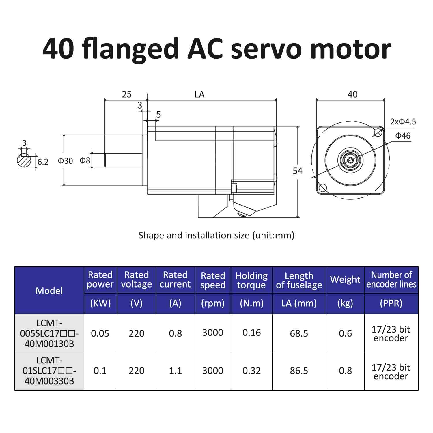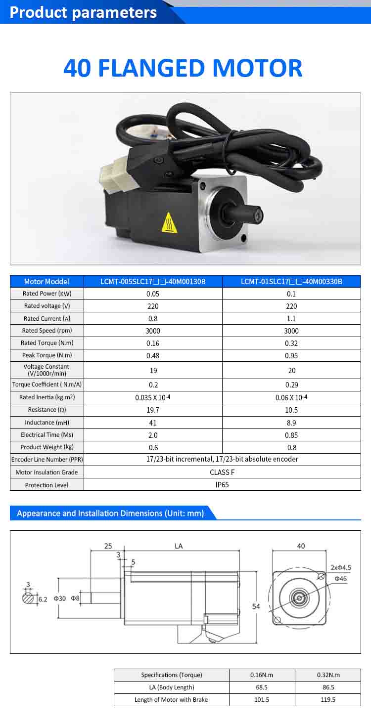 | Motormodel | LCMT-005SLC17-40M00130B | LCMT-01SLC17-40M00330B |