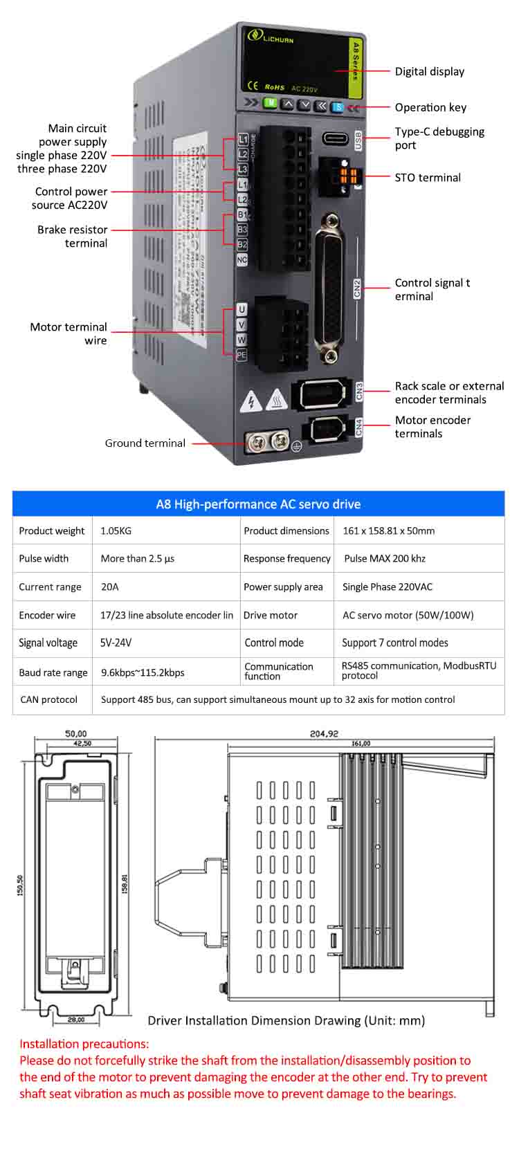 Dette gørLichuan A8 STO ABZ AC-servomotordriversæt med høj nøjagtighedvelegnet til præcise lineære og roterende bevægelseskontrolsystemer, der kræver hurtig reaktion, lav vibration og nøjagtig positionering.
