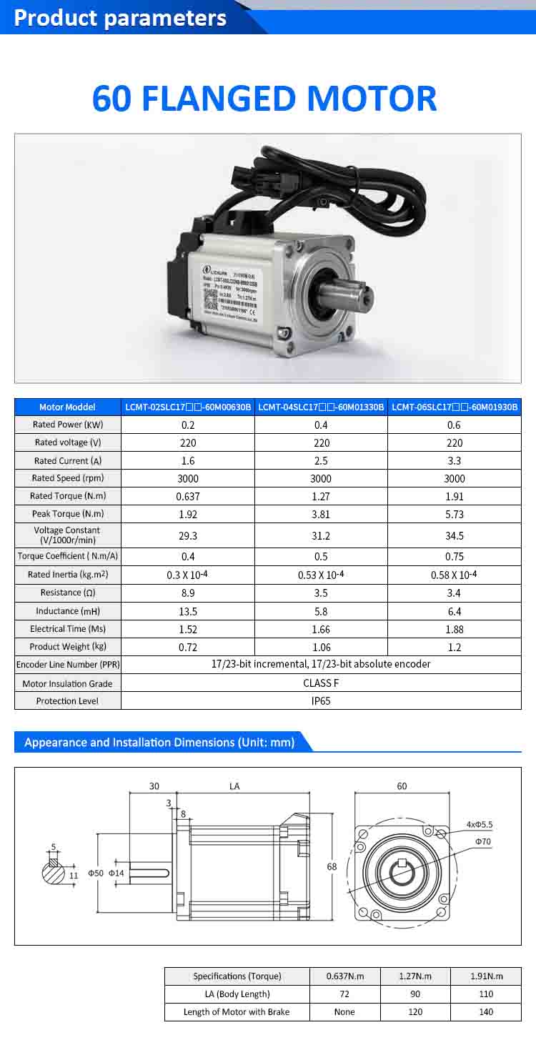 | Motormodel | LCMT-02SLC17-60M00630B | LCMT-04SLC17-60M01330B | LCMT-06SLC17-60M01930B |