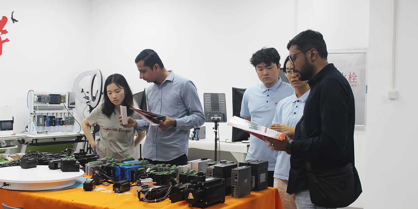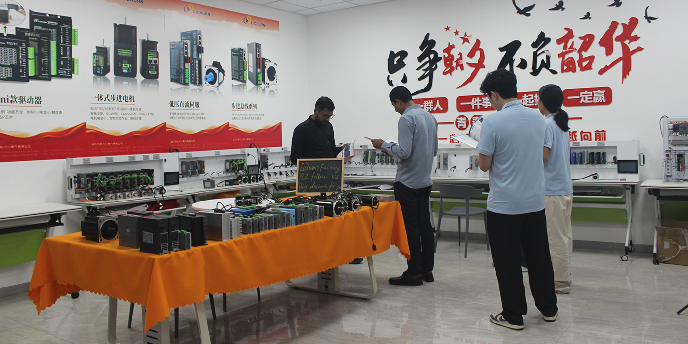 Ledsaget af Liu Feng, general manager for Xinlichuan og kerneteamet, gennemførte delegationen en dybdegående rundvisning i virksomhedens F & U-center, produktionsværksted og produktudstillingshall. Som en førende virksomhed i Kinas industrielle automatiseringskontrolsektor viste Xinlichuan sit fulde udvalg af trin-servo-produkter, herunder kerneudbud som det nyligt lancerede A5-serie AC-servo-system, 57/60 digital lukket loop hybrid servo og 42/57 Integrated Stepping Motor. Disse produkter, der er kendt for deres høje præcision, pålidelighed og omkostningseffektivitet, er vidt brugt i over 100 industrier såsom CNC-værktøjsværktøjer, tekstilmaskiner og emballage og udskrivning. I produktionsværkstedet inspicerede delegationen af automatiserede produktionslinjer og strenge kvalitetskontrolprocesser, der udtrykker høj anerkendelse for Xinlichuans intelligente fremstillingsstyringssystem og avanceret testudstyr. Teknisk personale demonstrerede drift af udstyr og præstationstest på stedet, hvor kundens repræsentanter deltager i dynamiske responseksperimenter for servomotorer. De bekræftede stærkt produkternes egenskaber ved hurtig start/stop, præcis positionering og drift med lav støj.